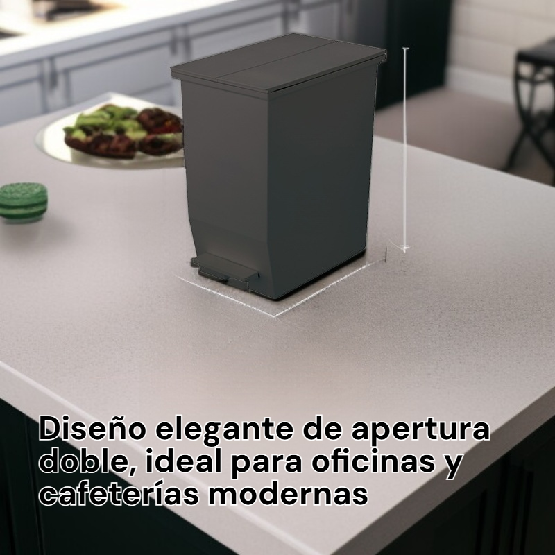 ● Capacidad de 32L y sistema de pedal higiénico, permite desechar residuos sin necesidad de usar las manos, manteniendo el área limpia y ordenada.