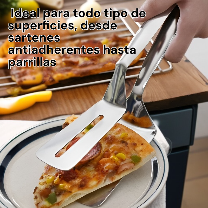 ● Fabricada en acero inoxidable de alta calidad, la espátula es resistente a la corrosión y garantiza una larga vida útil en tu cocina. ● Su diseño ergonómico ofrece un agarre cómodo y seguro, facilitando el volteo de alimentos sin esfuerzo y evitando accidentes durante la cocción. ● Ideal para todo tipo de superficies, desde sartenes antiadherentes hasta parrillas, esta espátula es versátil y perfecta para cualquier preparación culinaria. ● Fácil de limpiar y apta para lavavajillas, ahorra tiempo en la limpieza y mantiene su brillo y funcionalidad como el primer día.